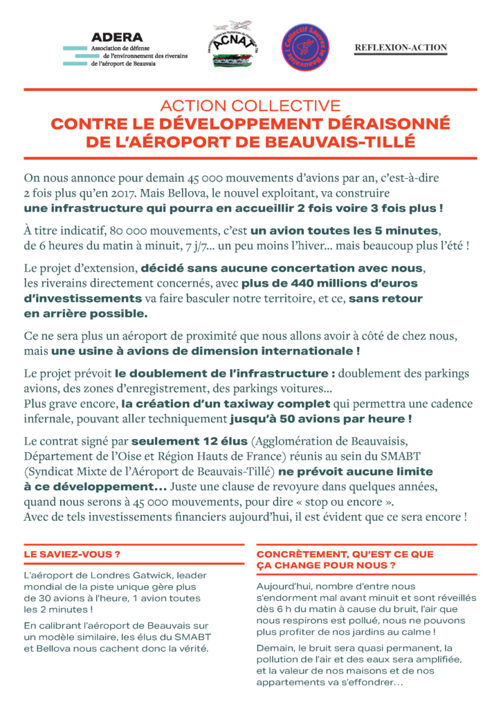 Réservez la date du 13 mars en fin d’après-midi (détails à venir) pour venir demander le plafonnement de l’aéroport de Beauvais-Tillé avec un déplacement à Paris le 15 mars.